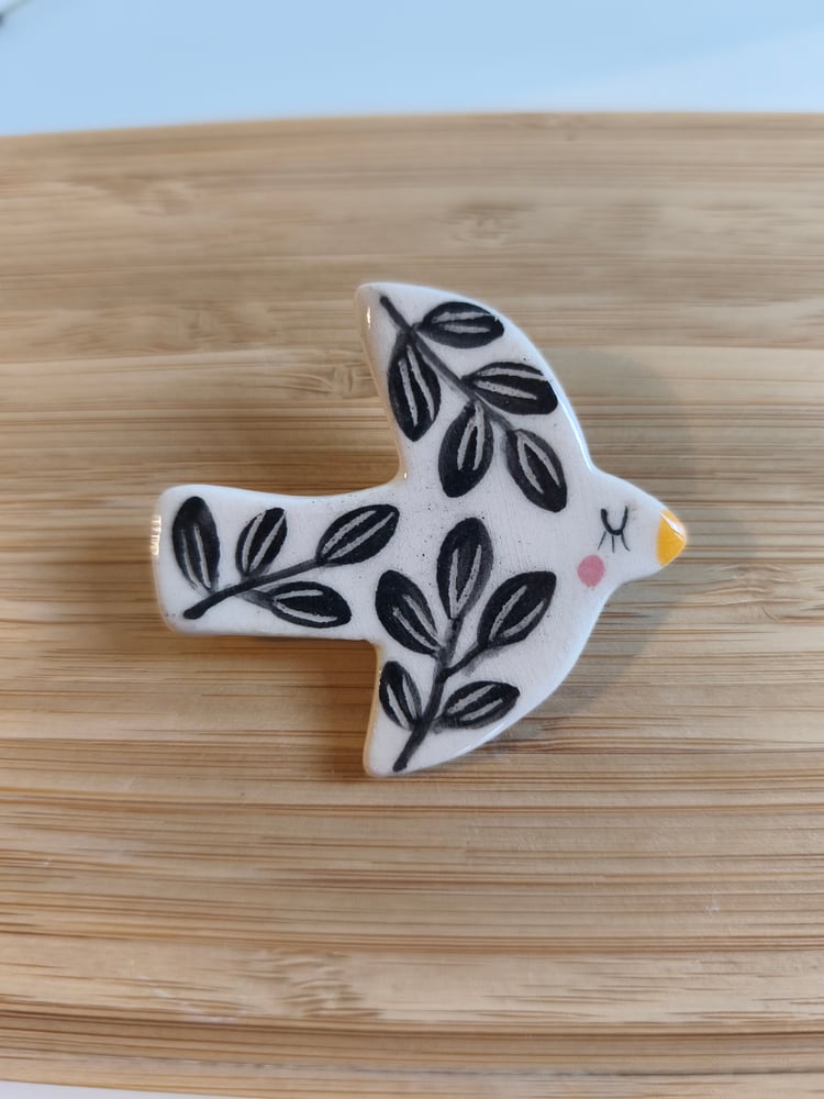 Broche oiseau feuillage noir