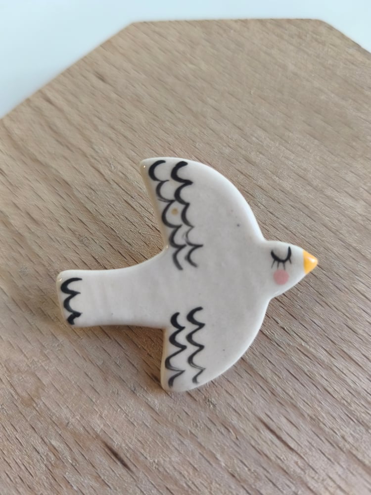 broche oiseau en faience, décorée à la main