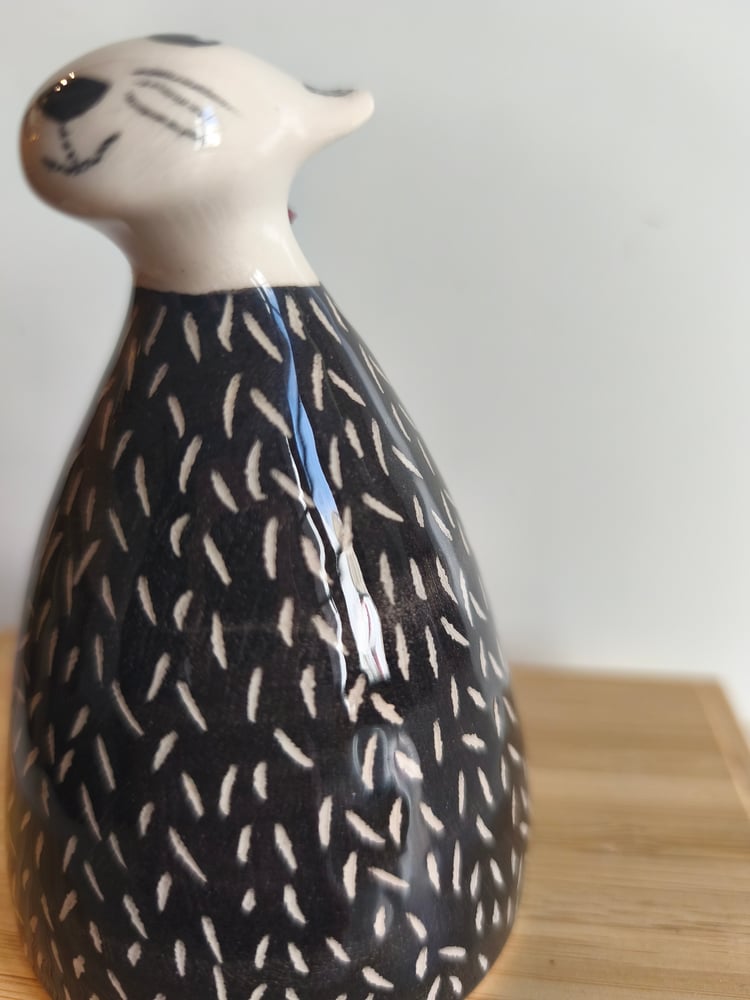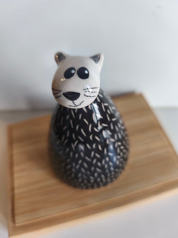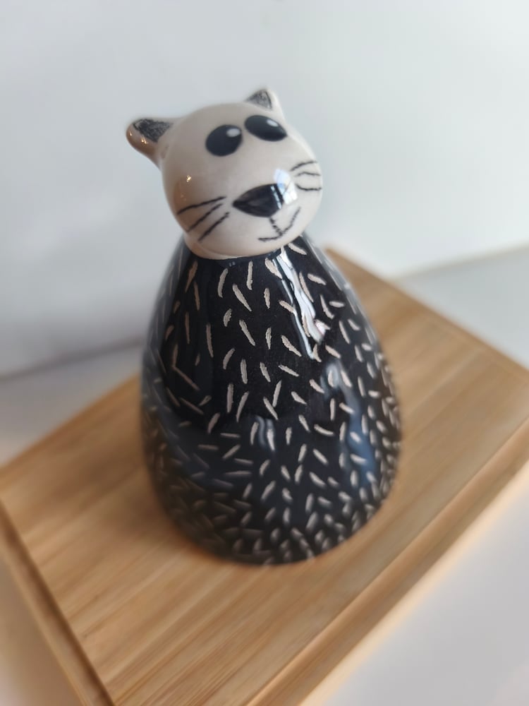Clochette chat en faience, tournée et décorée à la main. Petite bille de terre à l'intérieur h: environ 11 cm