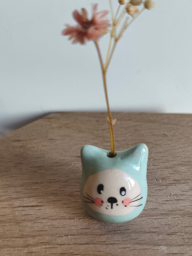 Petit grigri modelé et décoré à la main, percé sur le dessus pour y insérer une petite fleur
