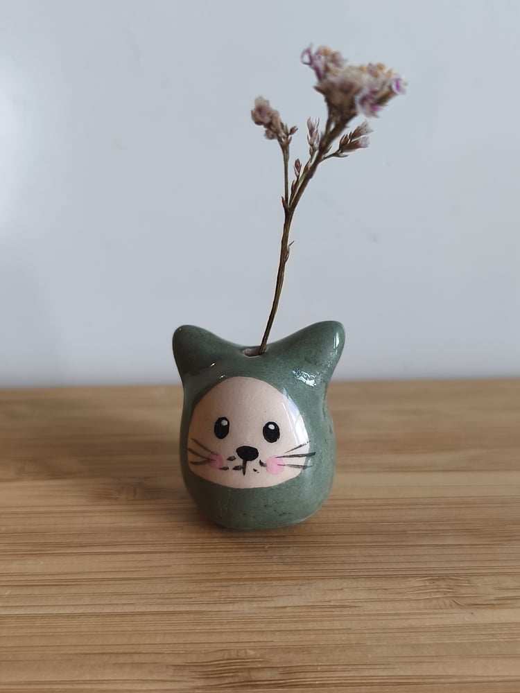 Petit grigri modelé et décoré à la main, percé sur le dessus pour y insérer une petite fleur