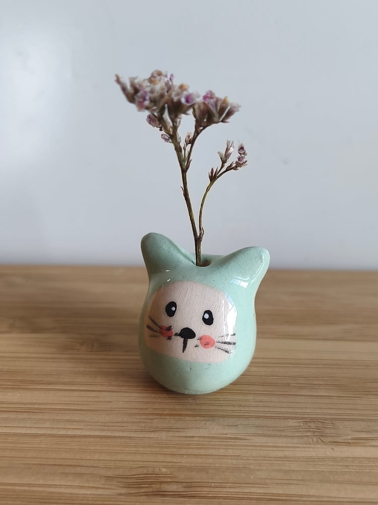 Petit grigri modelé et décoré à la main, percé sur le dessus pour y insérer une petite fleur