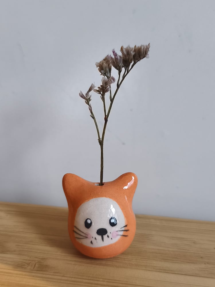 Petit grigri modelé et décoré à la main, percé sur le dessus pour y insérer une petite fleur