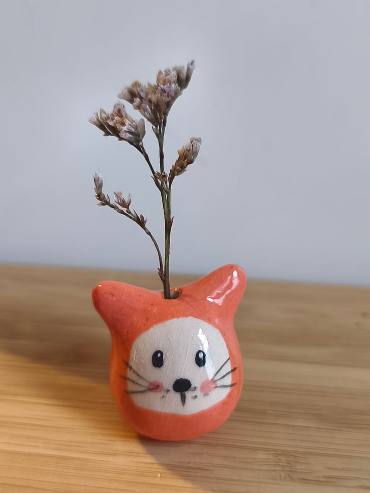 Petit grigri modelé et décoré à la main, percé sur le dessus pour y insérer une petite fleur