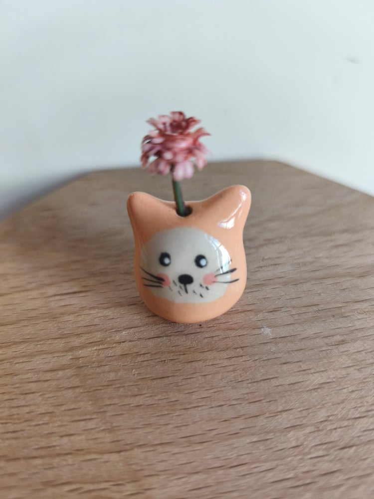 Petit grigri modelé et décoré à la main, percé sur le dessus pour y insérer une petite fleur