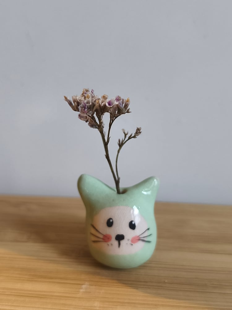 Petit grigri modelé et décoré à la main, percé sur le dessus pour y insérer une petite fleur