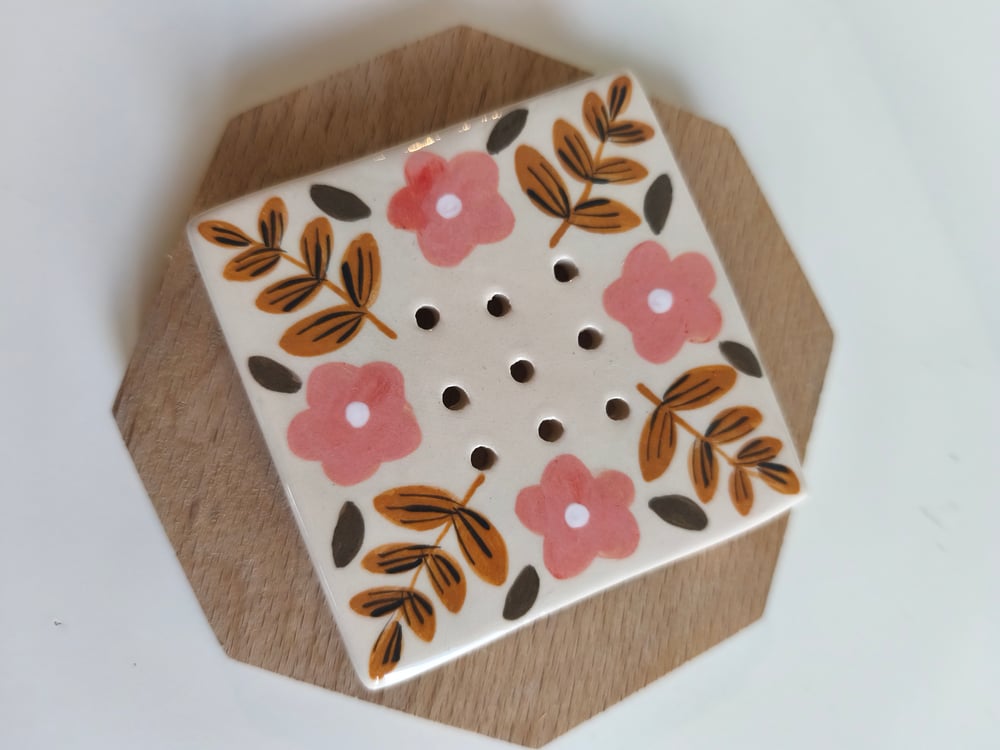 Porte savon en faience, décoré à la main