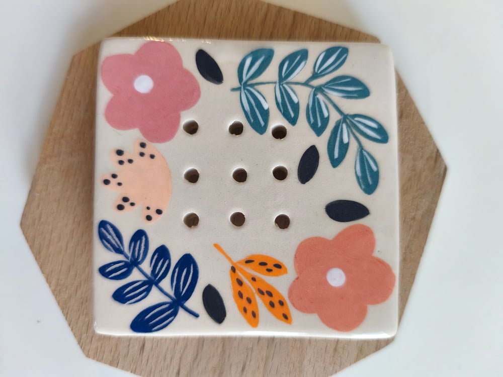 Porte savon en faience, décoré à la main