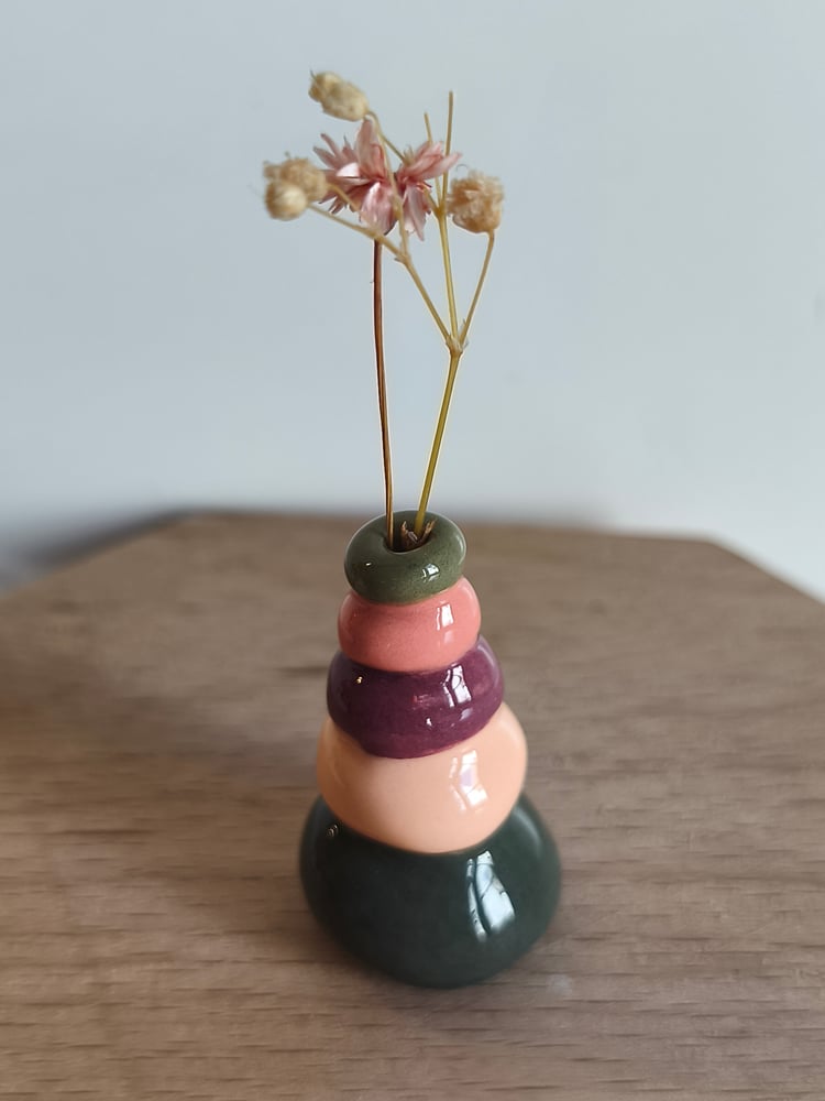 Vase miniature en faience, modelé et décoré à la main. Trou percé sur le dessus pour y insérer une petite branche de fleurs. les minis vases mesurent environ de 3 cm à 5cm de hauteur