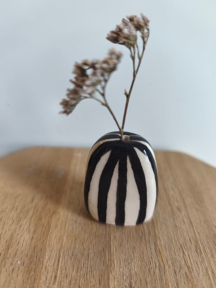 Vase miniature en faience, modelé et décoré à la main. Trou percé sur le dessus pour y insérer une petite branche de fleurs. les minis vases mesurent environ de 3 cm à 5 cm de hauteur